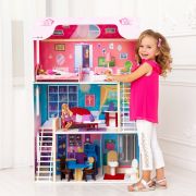 Дом предназначен для девочек старше трехлетнего возраста. Игрушка 100% деревянная, ни одного пластикового или картонного элемента в каркасе и мебели.