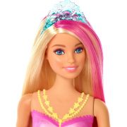 Любимая Барби в новом фантастическом образе мерцающей русалочки станет желанным подарком для любой девочки! Барби выглядит как настоящая принцесса подводного мира. Она просто очаровательна: ослепительная улыбка, выразительные глаза и роскошный полупрозрачный хвост со сверкающим плавником не оставят равнодушной вашу малышку. Длинные светлые волосы куклы с яркими розовыми прядями можно уложить в прическу и украсить изящной бирюзовой диадемой.